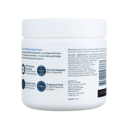 - Moisturizer cream contains lactic acid and helps with gentle exfoliation