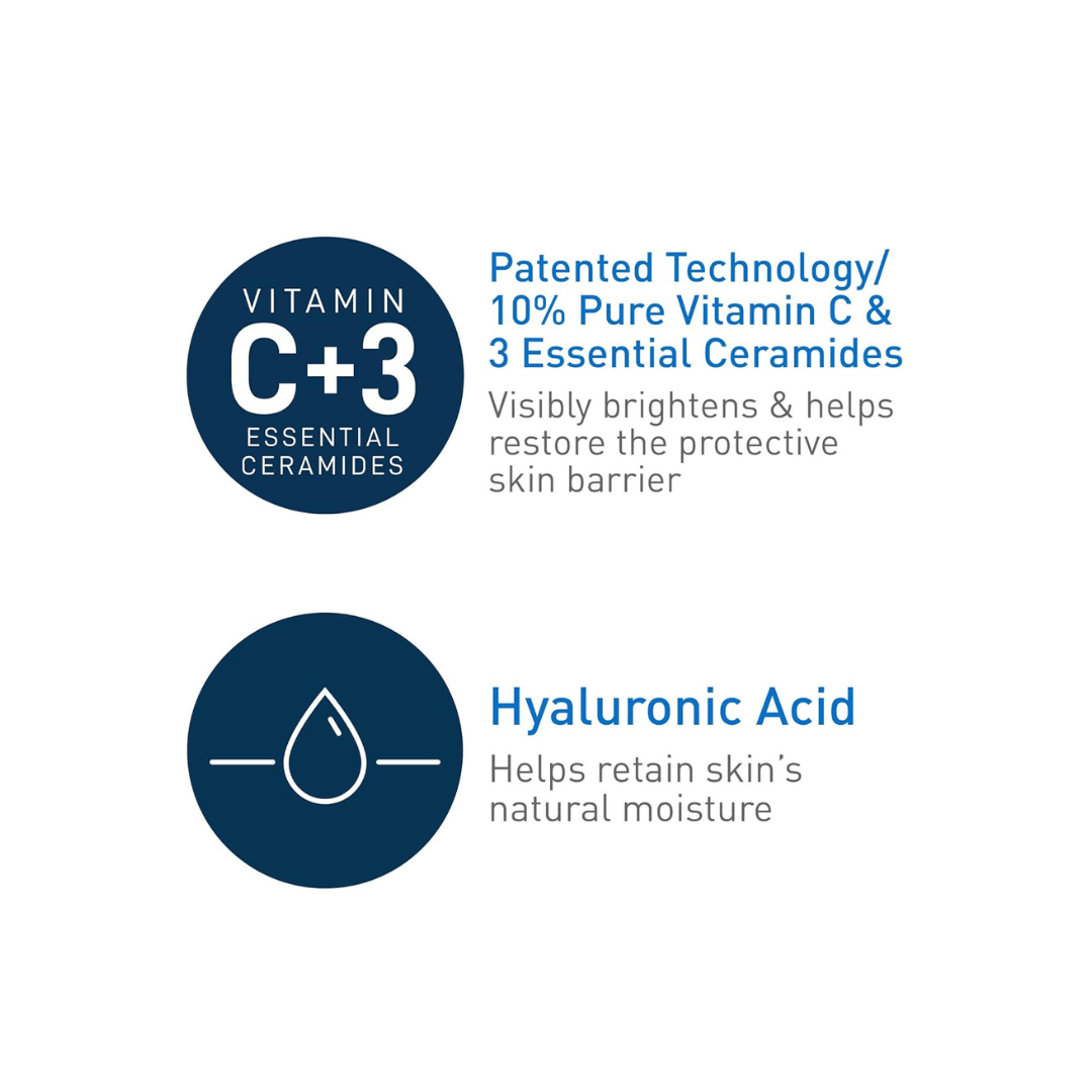 - CeraVe Skin Renewing Vitamin C Serum helps improve skin tone, texture and hydration